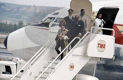 Haile Selasie, emperador de Etiopia, El Negus, visita oficialmente España. Cena de gala en el Palacio de Oriente, con asistencia de los Principes de España.