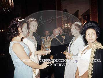 Haile Selasie, emperador de Etiopia, El Negus, visita oficialmente España. Cena de gala en el Palacio de Oriente, con asistencia de los Principes de España.