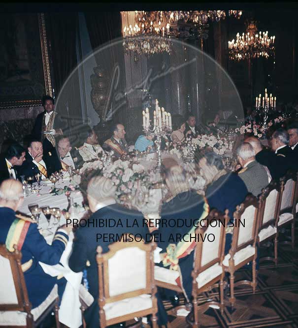 Haile Selasie, emperador de Etiopia, El Negus, visita oficialmente España. Cena de gala en el Palacio de Oriente, con asistencia de los Principes de España.