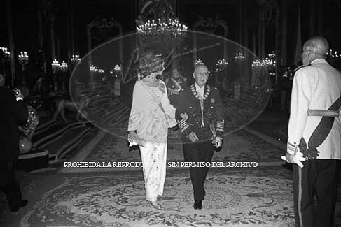 Visita del Presidente de Paraguay Alberto Stroessner a España en 1973. Cena de Gala en el Palacio de Oriente.
