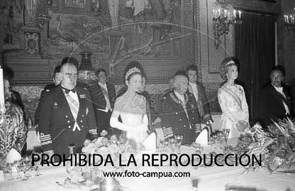 Cena de gala en el Palacio de Oriente en honor a los Principes herederos al trono del Japón, Akihito y la princesa Michiko.